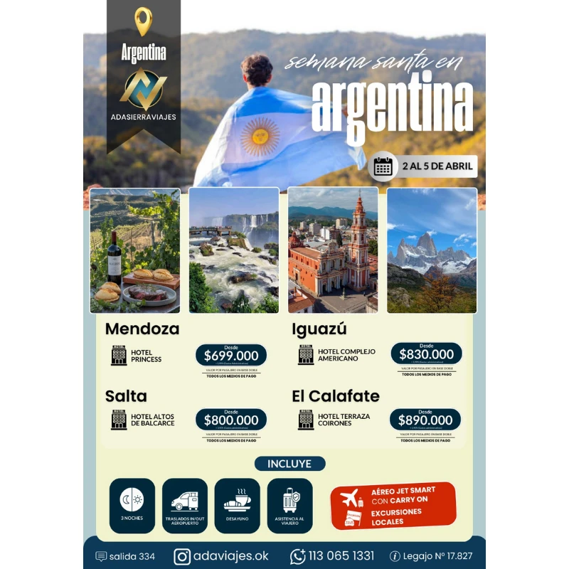 4 DESTINOS DISPONIBLES MENDOZA / IGUAZÚ / SALTA / CALAFATE